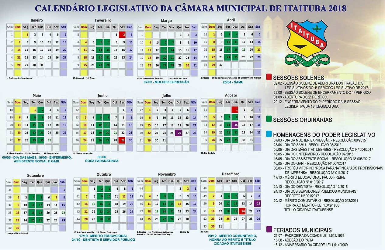CALENDÁRIO DO LEGISLATIVO MUNICIPAL